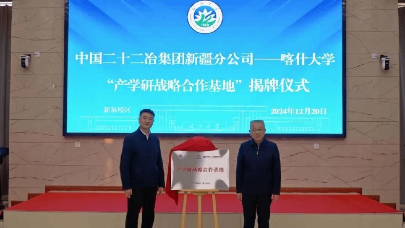 12月20日,我校与中国二十二冶集团新疆分公司在喀什大学新泉校区隆重举行捐赠签约仪式暨喀什大学--中国二十二冶集团有限公司“产学研战略合作基地”揭牌仪式。中国二十二冶集团新疆分公司向喀什大学捐赠200万元,助力高等教育事业繁荣发展。